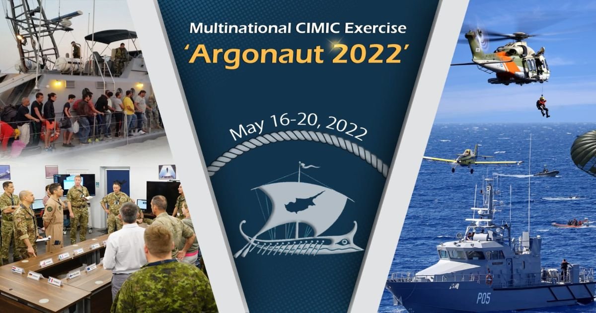 Πολυεθνική άσκηση πολιτικοστρατιωτικής συνεργασίας με την επωνυμία «ΑΡΓΟΝΑΥΤΗΣ 2022», πραγματοποιείται από τις 16 μέχρι τις 20 Μαΐου 2022 στο θαλάσσιο, εναέριο και χερσαίο χώρο της Κυπριακής Δημοκρατίας.