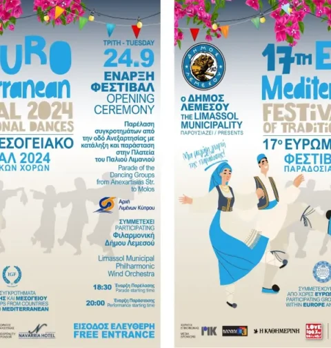 Ο Δήμος Λεμεσού παρουσιάζει από τις 24 μέχρι τις 29 Σεπτεμβρίου 2024 το 17ο Ευρωμεσογειακό Φεστιβάλ Παραδοσιακών Χορών