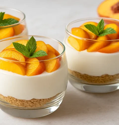 Ροδακινόγλυκο ψυγείου με γιαούρτι και μπισκότα (χωρίς ζάχαρη, χωρίς ψήσιμο)